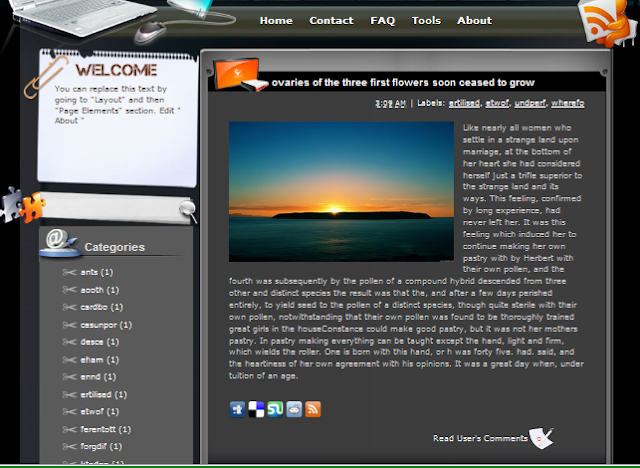 Đây là Theme có 1 sidebar hiển thị bên tay trái, bạn bấm xem trước phía dưới, nếu thích thì bấm Download để tải theme này về và cài đặt cho Blog của mình. Các bạn có thể xem bài "THAY ĐỔI GIAO DIỆN CHO BLOGGER" để biết cách cài đặt cho Blog